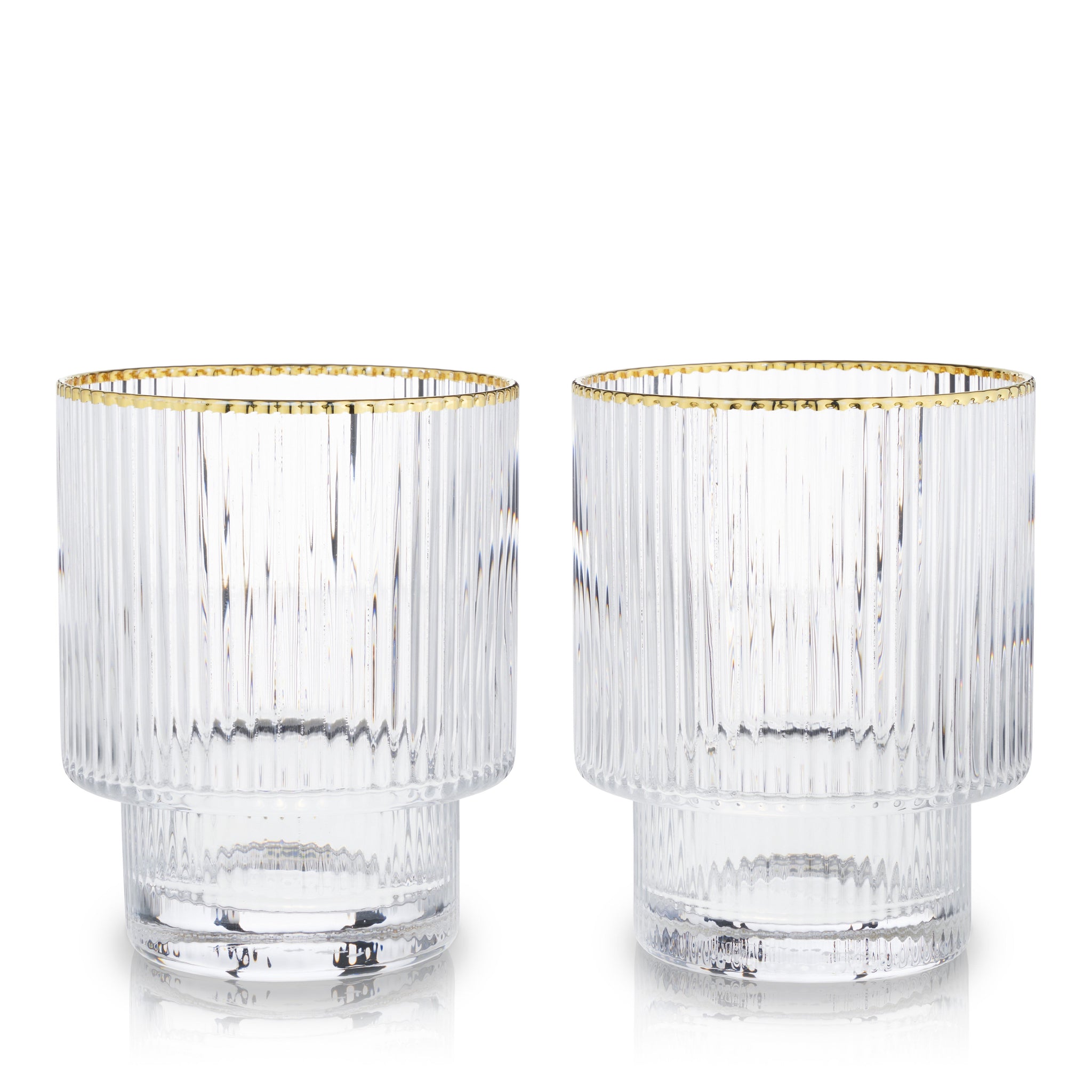 With stunning clarity and a rippled texture, this pair of gold-rimmed tumblers brings understated elegance to any cocktail. This stackable glassware has a subtly contemporary shape that enhances your sipping experience and complements any decor style.